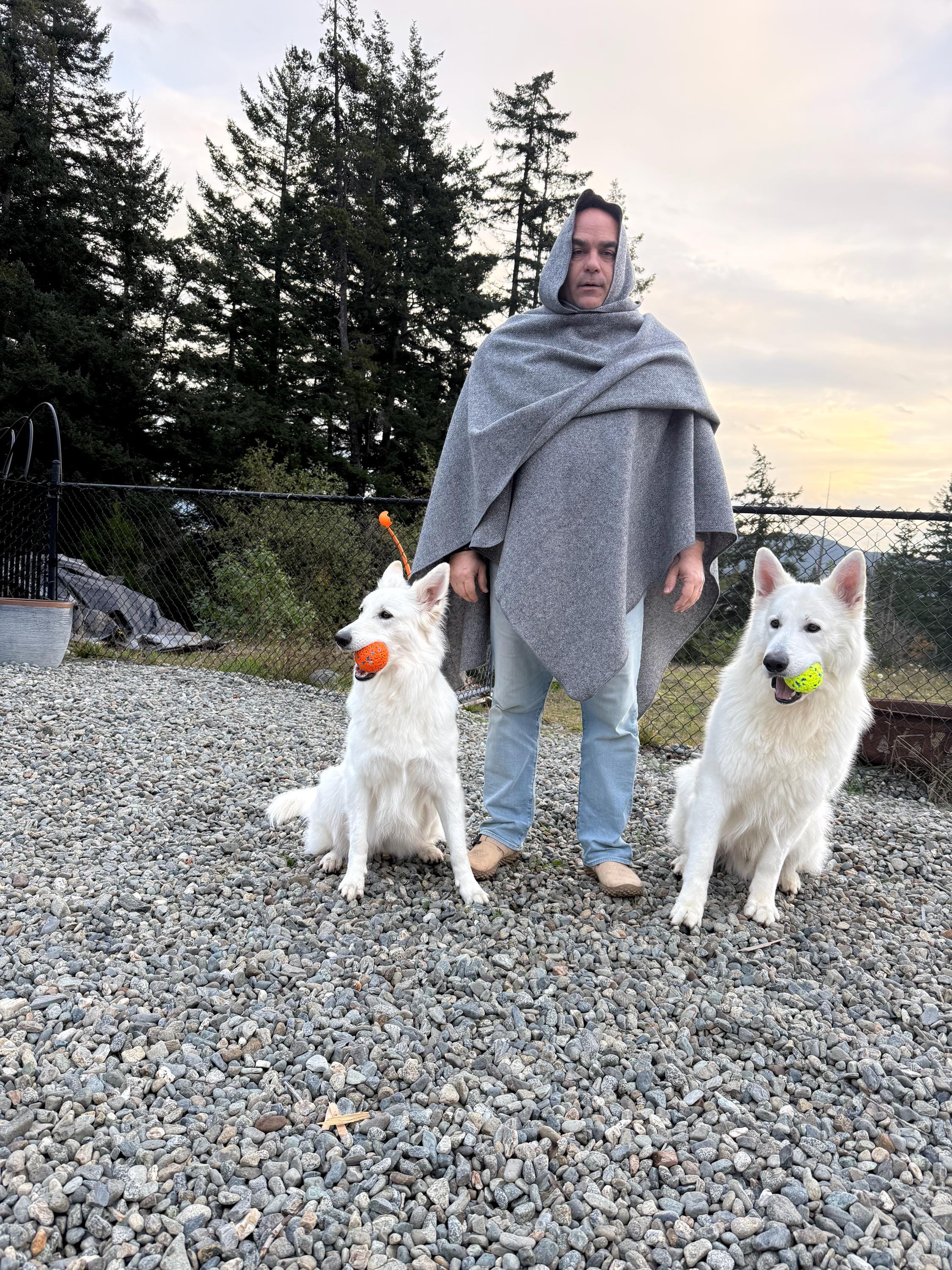 Irish Donegal Tweed Wool Hooded Ruana, Cape, Rectangle Cloak - Traditional Grey Fleck - Heavy Tweed - Unisex - HANDMADE IN IRELAND