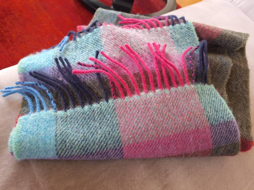 Irish Soft Lambswool Scarf - 100% Pure New Wool - multicolour eye catching Tartan Plad Check- 24 x 200cm - very soft - HANDMADE IN IRELAND
