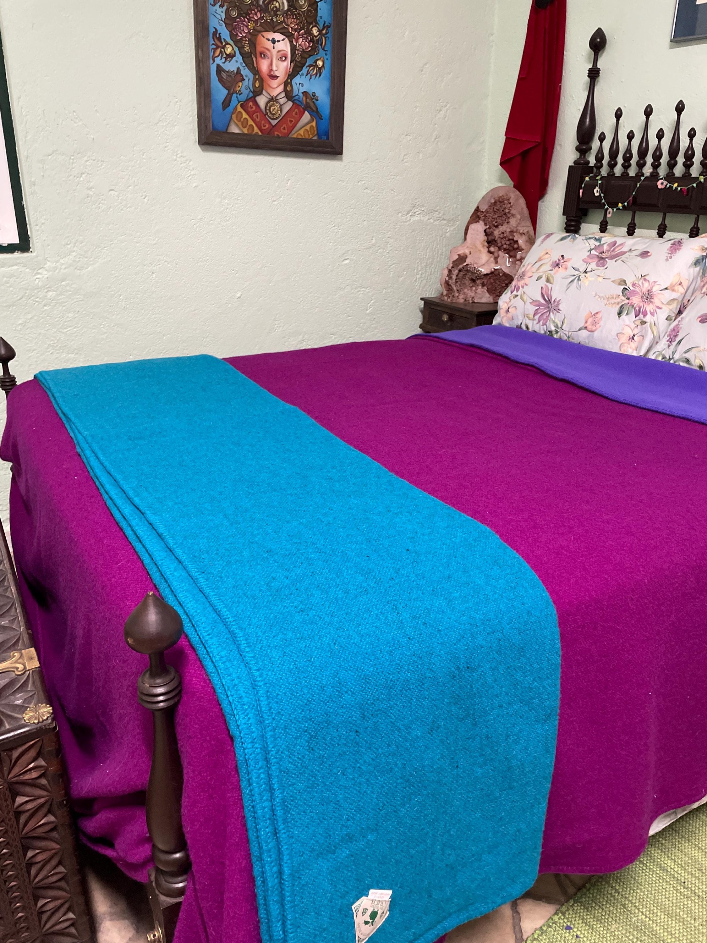Twin Size Wool Blanket - Atlantic Teal - 70″ x 90″ (178 x 229cm) - 100% Pure New Irish Sheep Wool - Thick & Heavy - MADE IN IRELAND - DDP to the US & Canada