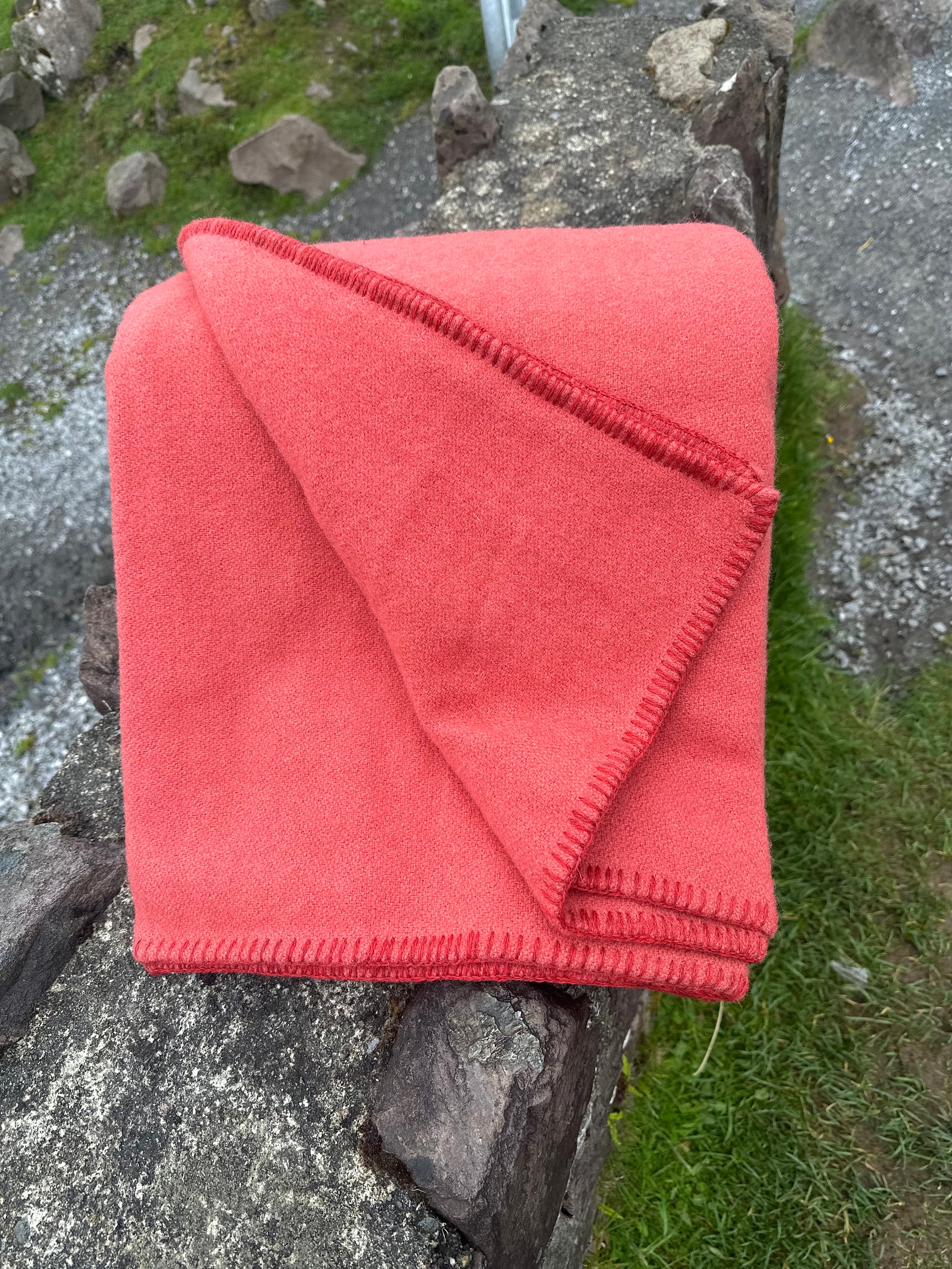 Luxurious Heavy Solid Coral 100% Pure New Irish Wool Blanket – Mulesing-Free, Handcrafted in Ireland – 90" x 100" - DDP to USA and Canada