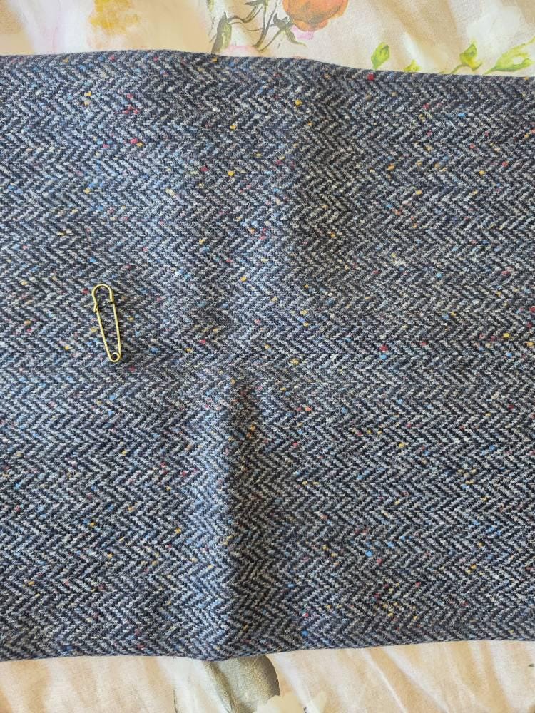 Irish Donegal Tweed Wool Shawl -Oversized Scarf, Stole - Speckled/Fleck- Navy & Blue Herringbone - 100% Pure New Wool - HANDMADE IN IRELAND